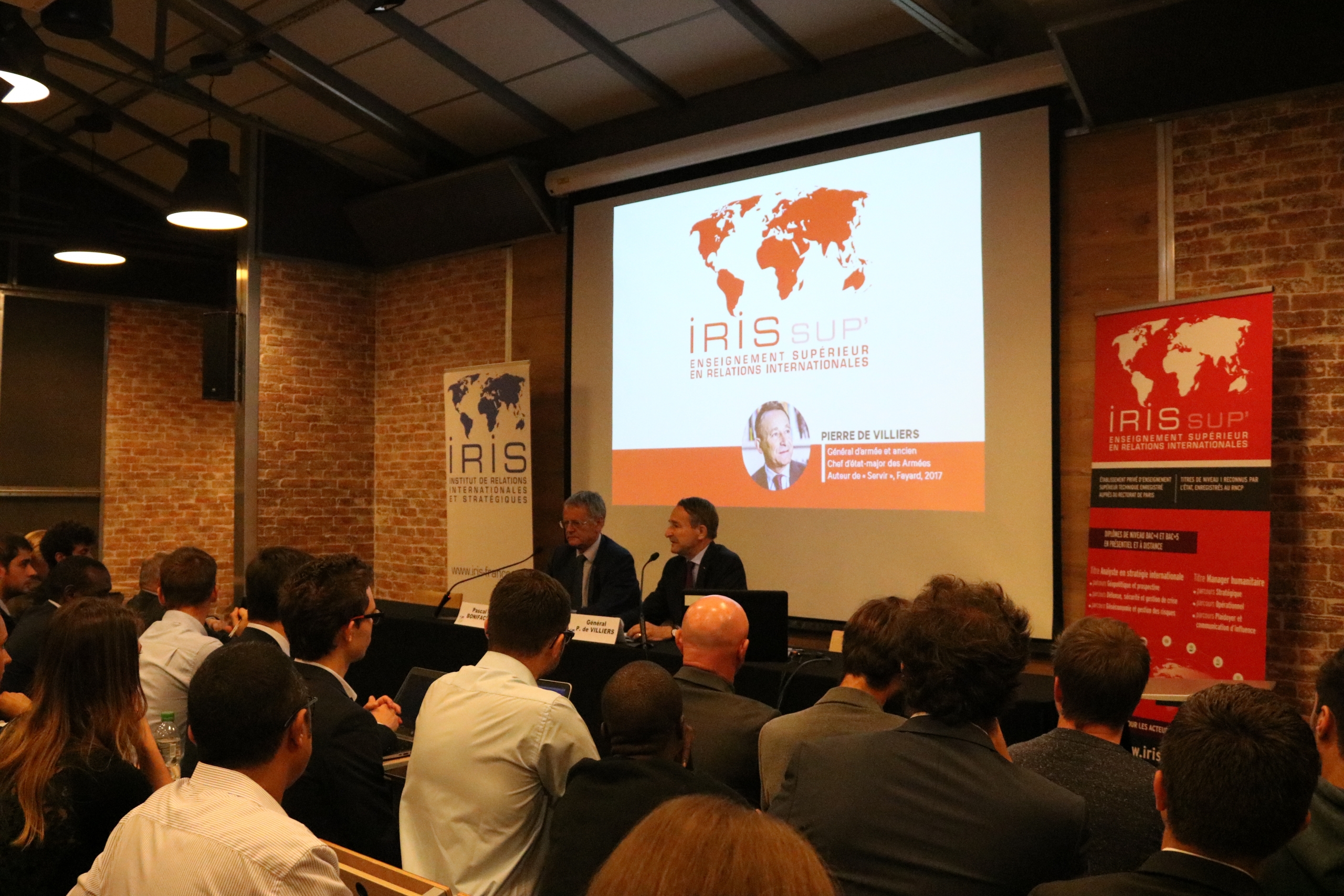 Jeudi 4 octobre, les étudiants d’IRIS Sup’ ont eu l’honneur d’assister à une conférence-débat de rentrée en présence du général Pierre de Villiers, ancien chef d’État-major des armées. La conférence était animée par Pascal Boniface, au sein des locaux de l’IRIS. Le thème abordé « L’histoire s’écrit sous nos yeux ».