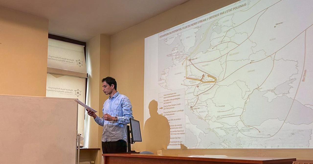 Ce déplacement a également été l’occasion de renforcer le dialogue stratégique franco-polonais en milieu universitaire. Dans ce cadre, Sami Ramdani est intervenu dans plusieurs cours pour présenter une analyse des effets du corridor gazier nord-sud en Europe centrale et orientale dans le contexte de l’invasion russe en Ukraine. L’exemple du transit de gaz naturel liquéfié vers la Tchéquie et la Slovaquie illustre les paradoxes des infrastructures européennes, initialement conçues pour d’autres usages.