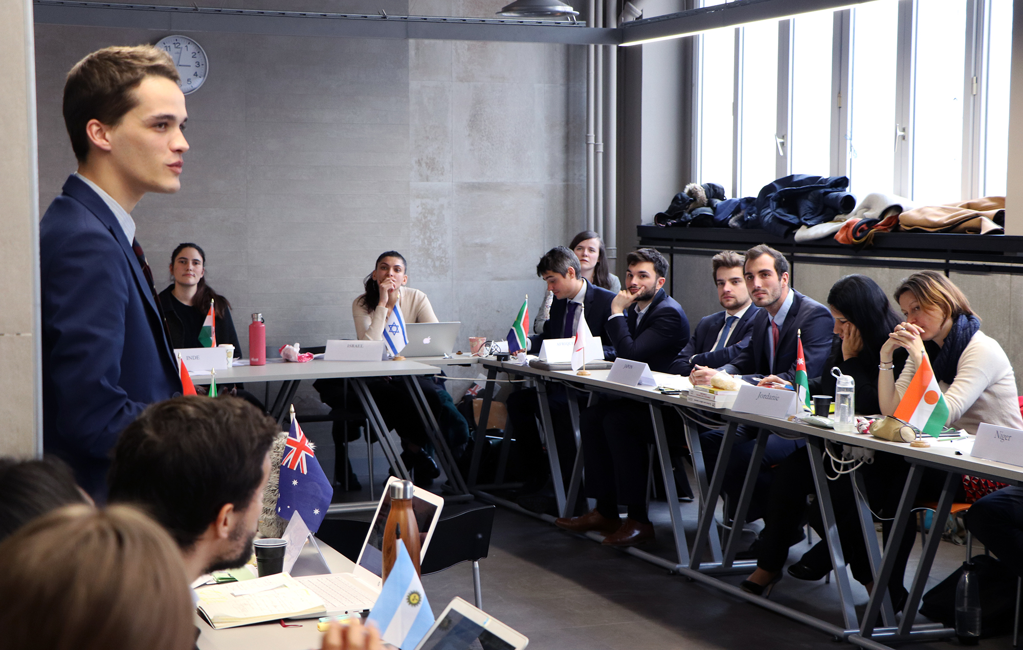 Mardi 3 mars, les étudiants en Géopolitique et prospective ont effectué leur exercice de simulation de négociation internationale. Cet exercice pratique est un jeu de simulation de gestion de crise. Les étudiants ont pu à cette occasion prendre conscience des contraintes et difficultés à la prise de décision, dans un contexte de réunion internationale.