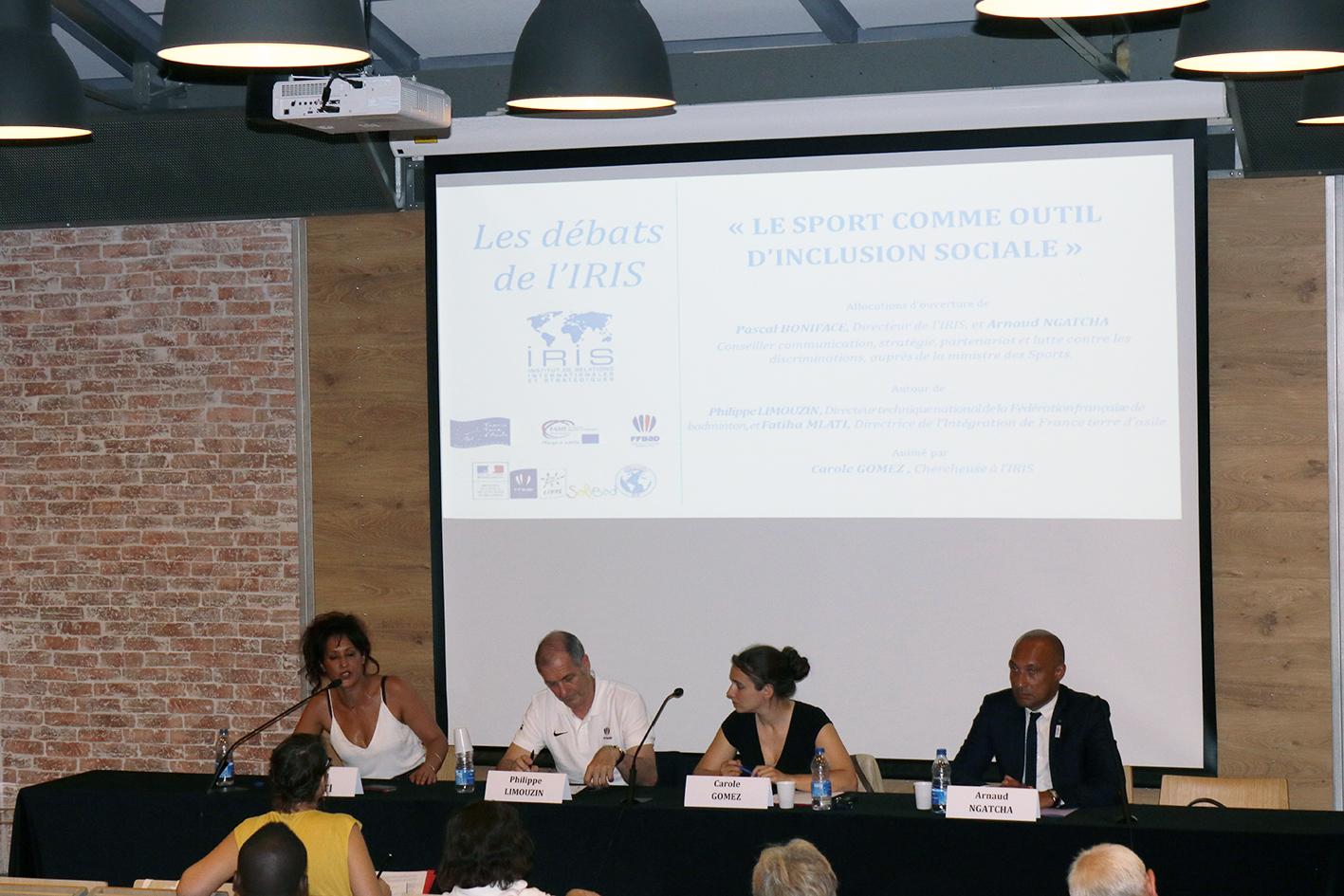 L’IRIS et IRIS Sup’ ont participé dans l’après-midi du 20 juin à l’animation organisée par la Mairie de Paris, en partenariat avec Paris 2024, au centre sportif Dauvin, dans le 18e arrondissement de Paris. Encadrés par la Fédération de badminton, des réfugiés et des étudiants d’IRIS Sup’ ont pu pratiquer ce sport et ainsi prendre part à cette journée. Suite à cet évènement sportif et d’échange, une conférence-débat sur « Le sport comme outil d’inclusion sociale » a été organisée, autour de Pascal BONIFACE, Directeur de l’IRIS, Arnaud NGATCHA, Conseiller communication, stratégie, partenariat et lutte contre les discriminations, auprès de la ministre des Sports, Fatiha MLATI, Directrice de l’Intégration à France terre d’asile et Philippe LIMOUZIN, Directeur technique national de la Fédération de badminton.
