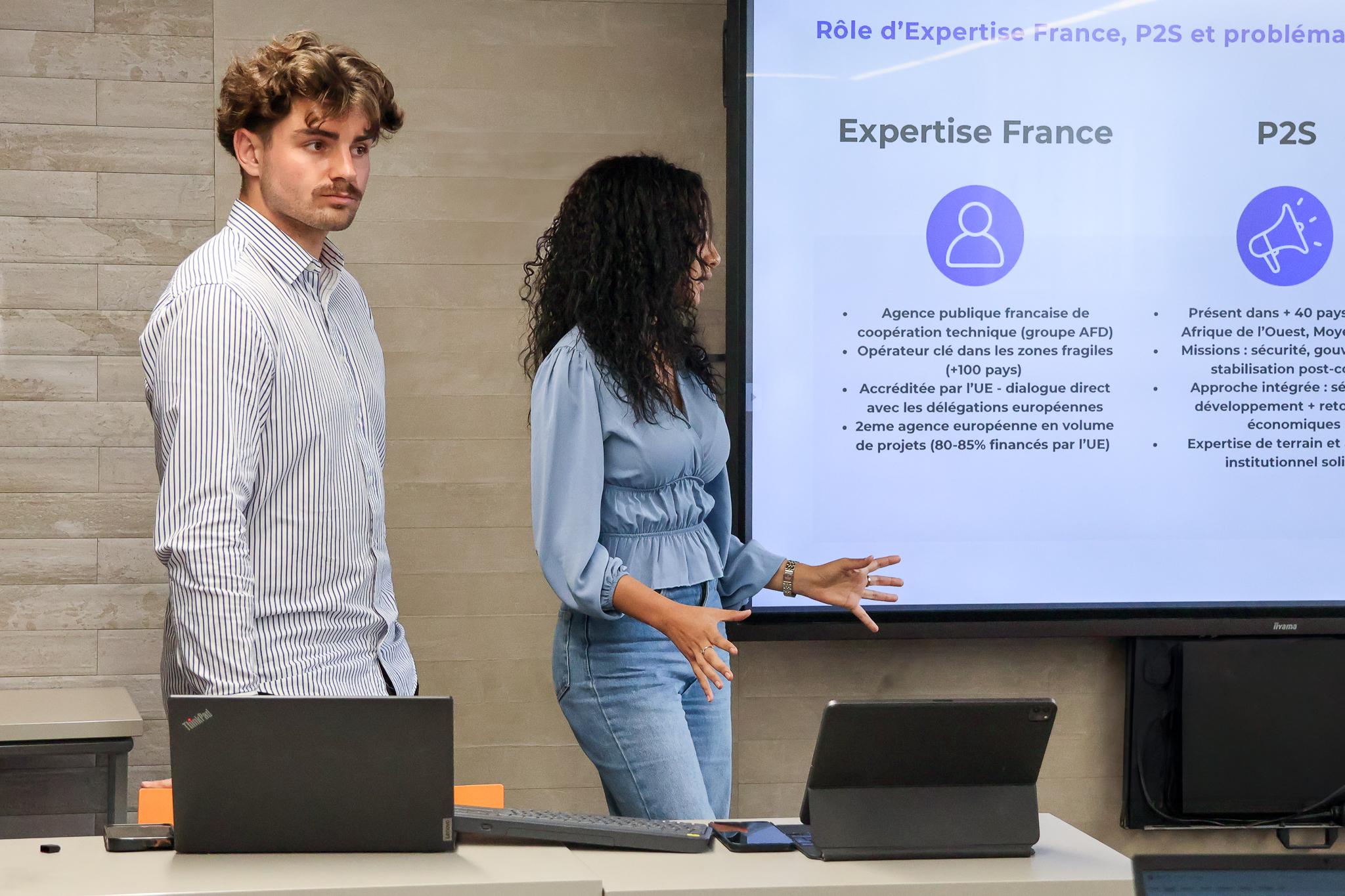 Ces projets, menés tout au long de l’année avec des entreprises ou des organisations (Windcoop, Expertise France, Kalmar, Toopi organics, BNP, etc.), portaient sur des enjeux de cartographie des risques, de business models et de stratégie internationale, avec une attention particulière à la responsabilité sociétale des entreprises (RSE).