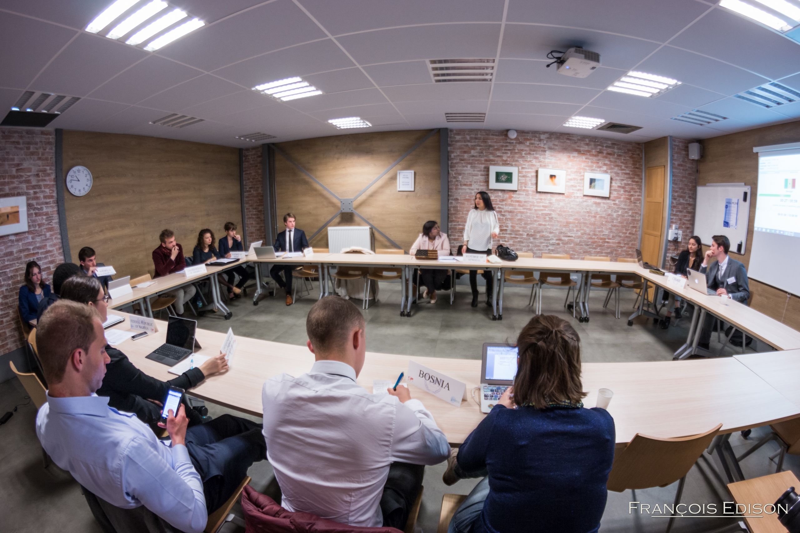 À cette occasion, une vingtaine d’étudiants des autres associations MUN de Paris est venue débattre dans les deux comités conçus pour l’occasion. Ils se sont répartis entre le Conseil de Sécurité des Nations unies afin de penser des actions concrètes pour lutter contre l’usage du viol comme arme de guerre, et le Conseil des droits de l’Homme qui débattait sur les violations des droits humains en Turquie. Ces thématiques très actuelles et sensibles ont donné lieu à des discussions stimulantes. Le nombre relativement réduit de participants a permis de créer une atmosphère dynamique et de faire évoluer les négociations tout au long de la journée.