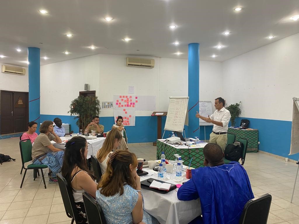 Venus de différents pays des continents européens (Belgique, Espagne, France, Italie, Suisse) et africains (République démocratique du Congo, Burkina Faso, Centre Afrique, Sénégal Cameroun), les stagiaires qui avaient fait leur rentrée virtuelle le 7 novembre dernier se sont rencontrés physiquement à Abidjan (Côte d’Ivoire) durant une semaine, en compagnie de Nathalie Ernoult et Caroline Gutton, les responsables pédagogiques de leur formation. Une belle occasion pour cette promotion constituée de 24 personnes riches de leur diversité de mieux se connaître et de partager des moments conviviaux.