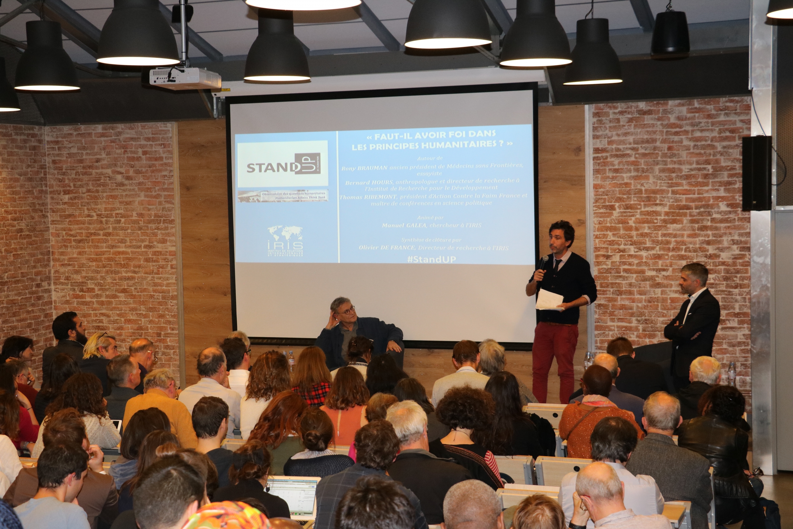 Ce Stand Up a permis d’interroger l’utilité, l’actualité et la légitimité des principes humanitaires. Si leur importance opérationnelle a été soulignée, l’institutionnalisation du discours sur les principes a été fustigée comme vecteur de coercition idéologique. Contre une certaine forme de naturalisation quasi théologique, l’échange entre les intervenants et le public a replacé les principes humanitaires dans la sphère concrète du débat d’idées, de la pratique et de la réalité du terrain, afin d’en souligner toute la complexité.