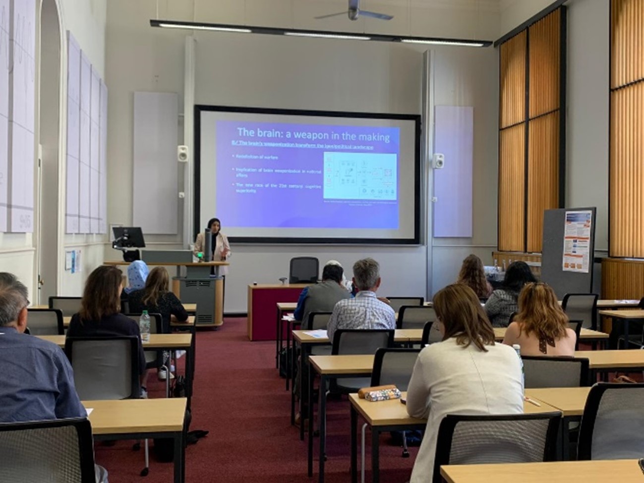 Après une évaluation rigoureuse par un comité scientifique, son article a été sélectionné pour une présentation orale au King’s College. Cet événement a réuni des experts de divers horizons, offrant une plateforme unique pour échanger des idées et créer des réseaux. Lors de sa présentation, Zainab Muhammad a mis en lumière les risques potentiels associés à la militarisation du cerveau. Elle a également souligné l’importance de développer des stratégies de défense contre les manipulations cognitives et de promouvoir une prise de conscience accrue sur ce sujet parmi les décideurs politiques et le grand public.